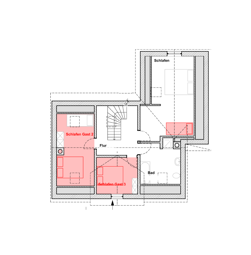Das Ferienhaus erstreckt sich über zwei Geschosse. Zur besseren Übersicht finden Sie hier einen Grundriss.